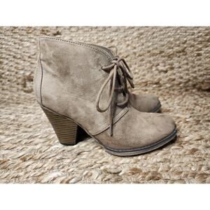 Mia Shawna Womens Size 6 M Taupe Sage Suede Heel Lace Up Fashion Ankle Boots