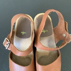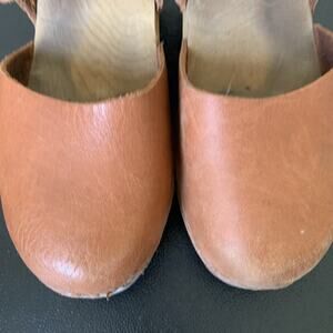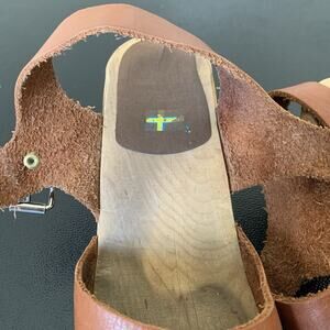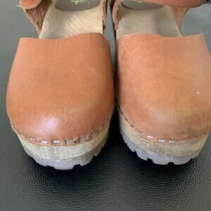 Mia Sofia Brown Leather Clog Shoes Chunky Wood Heels Ankle Strap EU 37