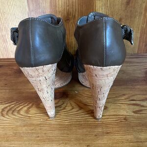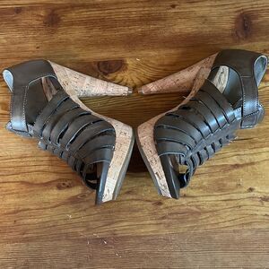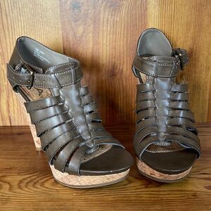 Mia Strappy Brown Sandals, Heels, Cork Heels, Adjustable Strap, size 7.5