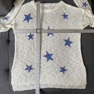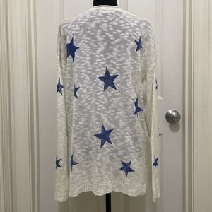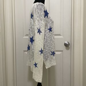 Mia & Tess Sweater Semi Sheer Star Print White Blue Lightweight Women's Large L