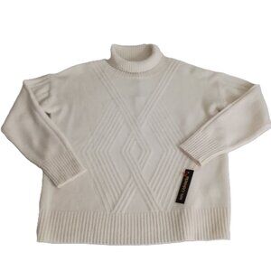 Mia & Tess Waterfall Front Cream Vest Women’s Size OS NWT Cream colored waterfall vest Looks pretty Add warmth to an outfit 100% Acrylic Very Good Condition except as noted – New With Tags – Note: I noticed a flaw on the back of the left arm hole (shown in picture). It looks like that area was not sewn by the factory. The flaw is covered by the scarf portion of the vest. Priced accordingly. Measurements approximate (taken flat, unstretched, please see pictures): Please note: due to the shape of the garment, the following measurements are estimates. The size of the garment is One Size. Shoulder to Shoulder: 15 1/2 inches across (top measurement from middle of armpit to middle of the armpit … measured on back) Bust: 15 1/2 inches across (bottom measurement from middle of armpit to middle of the armpit … measured on back) Length: roughly 40 inches (measured from where the bottom of the collar would be…measured to provide an estimate to determine what the vest length would be) Width of the vest from one side to the other: 54 inches (Tag size: OS - please see measurements and pictures above for best fit) Inv 092