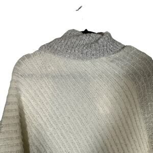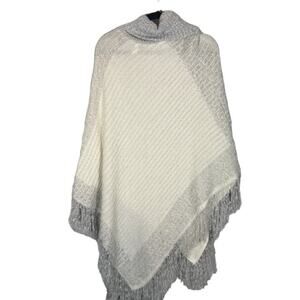 Mia & Tessa White & Gray Cape Loose Turtle Neck Tassel Knit Poncho Women Sz OS