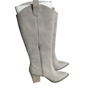 Mia NWT Tex Tall Western Boot Size 8.5 Grey Embroidered Pull On Heeled Riding Boots