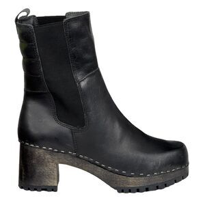 Mia Justina Clog Boots Black SZ 7 Handmade Brazil Chunky Real Wood Sole New Retro 90s Festival Grunge Boho Biker Alternative
