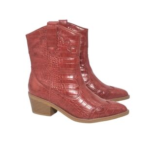 Step out in style with these chic red western ankle boots. Perfect for adding a bold touch to any outfit.