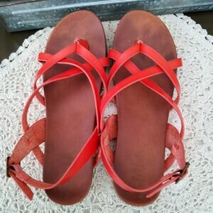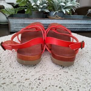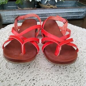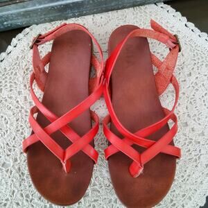 Grab this size 7 coral orange pair of strappy flat sandals now.