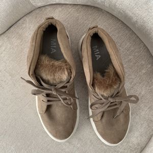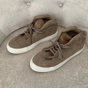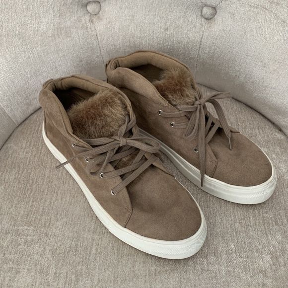 Mia Women’s Tillie High Top Suede Shoes Sneakers with Fur Camel Brown Size 7.5