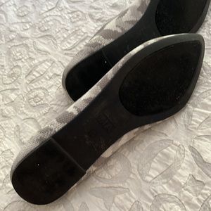 These super comfy flats have a rubber sole. They have only been worn a couple of times. Shades of grey camo goes with many things.