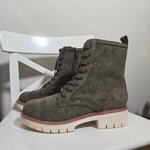 Mia Haven Combat Boot. Olive green suede ankle boots with perforated details, lace-up closure NWOT