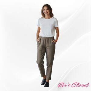 Mia inspiration Linen Blend Pants Relaxed Fit Elastic Waist Band Taupe Sz L