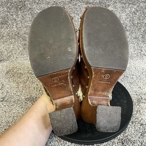 Mia Womens Clog Mule Shoes Brown Y2K Platform Chunky Heels Studded Slip On 9