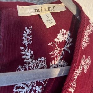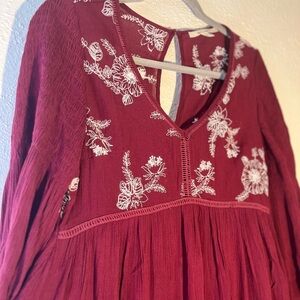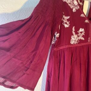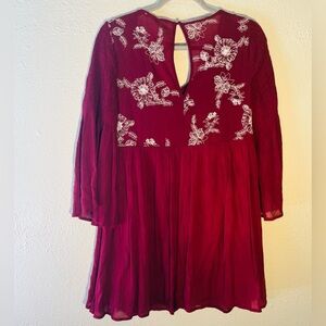 Miami 3/4 bell sleeve flowy dress~Sz S~Burgundy w/white floral embroidery