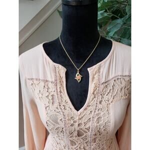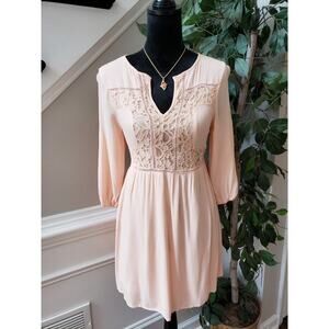 Miami A Line Dress Womens S Pink Lace Floral Lined Long Sleeve V Neck Pullover