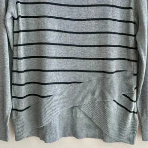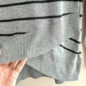 Miami Black Striped Crewneck Grey Pullover Sweater, Tulip Front, Size Medium