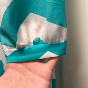 Real zig zags. Super flowy and comfy. Three quarter sleeves. Super cute and comfy spring/summer dress.