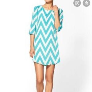 Miami Chevron Turquoise and White Sleeved Dress Size M Sheath Dress Retro Mini