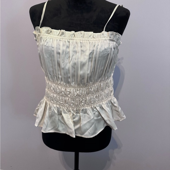 Chic cream top with ruffle accents. Ideal for stylish outings.