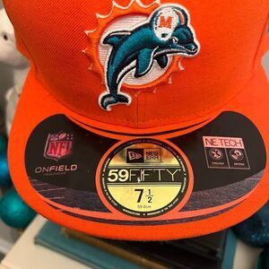 Miami Dolphins Fitted Onfield 59Fifty New Era NE Tech 7 1/2 Hat.