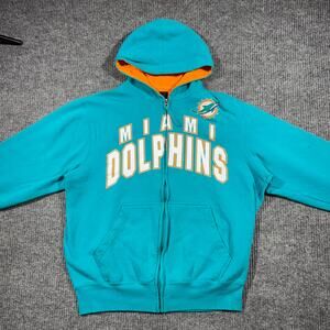 Miami Dolphins Full Zip Hoodie Mens L Aqua Blue NFL Fanwear Team Apparel