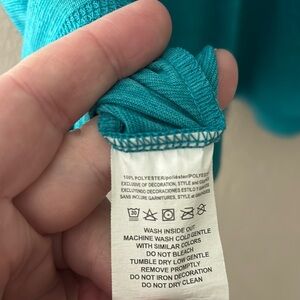 Teal Miami Dolphins T-shirt with orange logo. Comfortable and stylish. Has that athletic material feel.