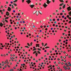 I got this in Miami on vacation and never ended up wearing it. It still has the tag with the extra rhinestones attached. It’s in perfect condition! It’s perfect for Las Vegas, Miami, Key West or a Caribbean vacation.