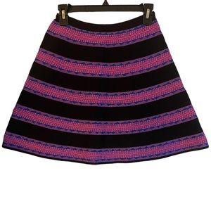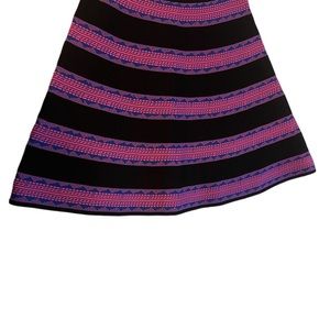 Miami Fit and Flare A Line Printed Striped Skirt Black and Pink Pattern Casual S