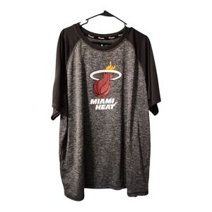 This men's 3XL athletic tee features a gray moisture-wicking Dri-Fit fabric, with the bold Miami Heat logo across the chest. Perfect for basketball fans, workouts, or casual days.