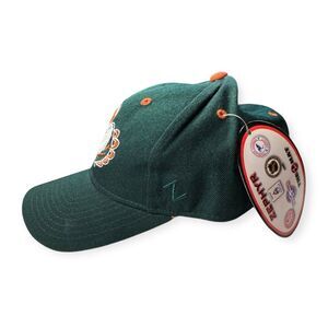 Show your support for the Miami Hurricanes with this Zephyr baseball fitted hat. The hat comes in a unique green and orange color scheme with the team mascot embroidered on the front. Perfect for any Unisex Adult fan, made with high-quality materials. It's a great addition to any fan's collection and perfect for game day attire. Get yours now!