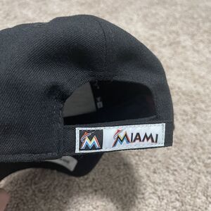 Miami Marlins Hat Black Shiny Classic Logo Embroidered Adjustable Strap MLB Cap