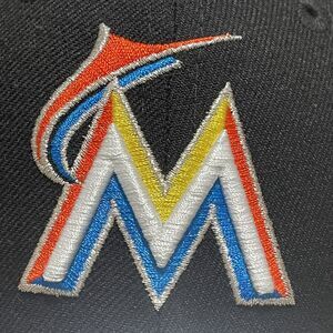 Miami Marlins Hat Black Shiny Rainbow Logo Embroidered Adjustable Strap MLB Cap