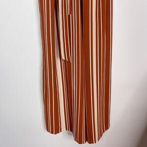 Miami Medium Rust Orange Cream Striped Jumpsuit Tie Waist VNeck Wrap Francescas
