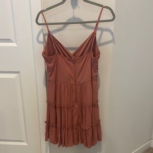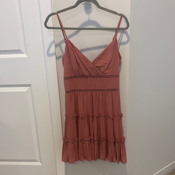 This chic sundress by Miami showcases a vibrant pink hue with a sleeveless design and delicate adjustable spaghetti straps. The wrap-style bodice features a flattering V-neckline, while the tiered ruffles add a playful touch to the mini silhouette. Perfect for a casual outing or a night out, its lightweight fabric ensures comfort and effortless style.