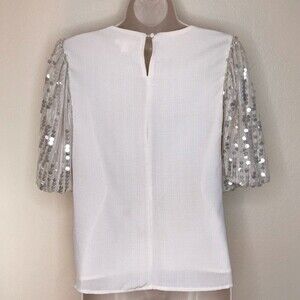 Miami Sequin Puffy Bubble Sleeve Ivory Cream Round Neck Blouse Women's Size XS