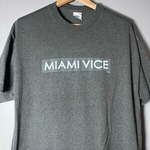 Get ready to cruise down memory lane with this awesome Miami Vice graphic tee! Miami Vice graphic T-shirt on an Alstyle AAA blank, size XL, in a soft heather gray. Clean minimalist logo graphic on the front. This is from the mid-2000s era, most likely tied to the 2006 Miami Vice movie reboot or later licensed merch.
