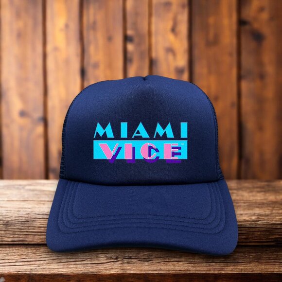 Miami Vice Unisex Trucker Hat Navy Snapback 80s Baseball Cap