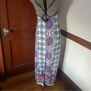 Miami White and Gray Spaghetti Strap Resort Maxi Sundress