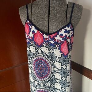 Embrace the elegance of resort wear with this Miami sundress, featuring a sleeveless design and delicate spaghetti straps. The dress boasts a sophisticated white and gray geometric pattern, perfect for a chic and breezy look. Ideal for warm weather getaways, this maxi dress combines style and comfort effortlessly.