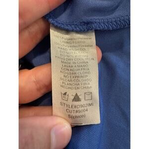 Miami Women’s Blue Boho Boutique Shift Dress Small Embroidered Hem Elastic Waist Lined