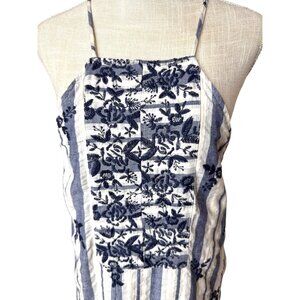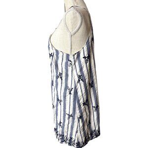 Miami Womens Blue & White Striped Embroidered Sundress Size L
