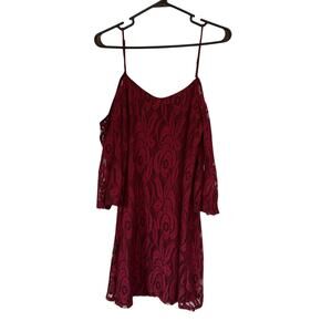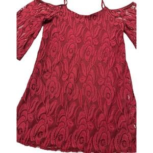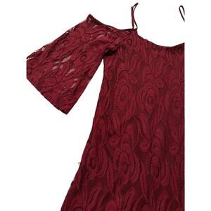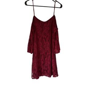 Miami Women's S Whimsigoth Red Lace Cold Shoulder Bell Sleeve Dress Romantic