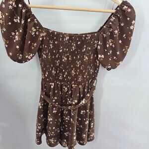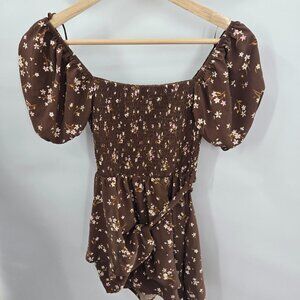 Miami by Franchesca's Brown Floral Lorena Smocked Romper Small