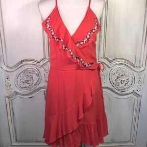 Miami for Francesca’s Spaghetti Strap Faux Wrap Ruffle Waisted Summer Dress S/L