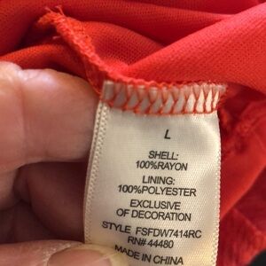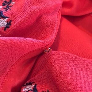 Lovely coral color with navy, silver, and pink embroidery