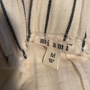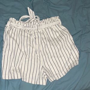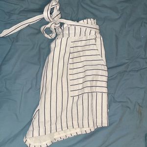 Great condition High waisted Elastic waistline around back Belt Size M Lined Black striped