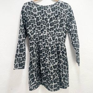 Condition is pre owned. No holes or stains. Fabric: Stretch, brushed twill. Bustier silhouette with underwire and lined cups. Leopard print. Mini-dress cut. Square neckline. Long sleeves. Hidden zip at front.