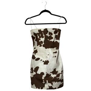 Miaou Dress Women XS Brown White Cow Print Strapless Lotte Mini Sheath Sexy