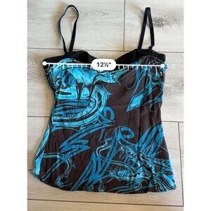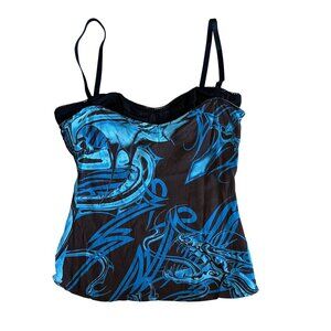 Miaou Enzo Tattoo Blue Black Linen Blend Tank Top Women's X-Small XS