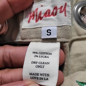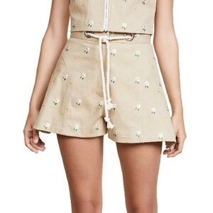 Miaou Greta Stretch Cotton High Waisted Daisy Shorts Size S Khaki Embroidered