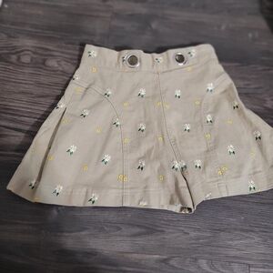 Miaou Greta Stretch Cotton High Waisted Daisy Shorts Size S Khaki Embroidered Floral