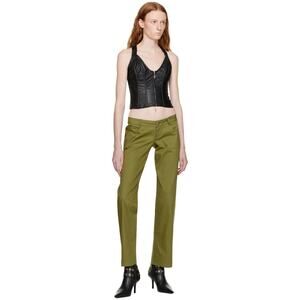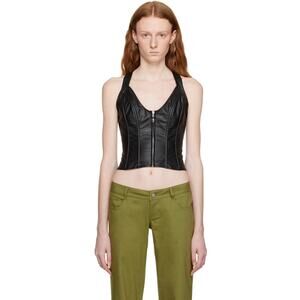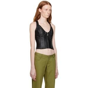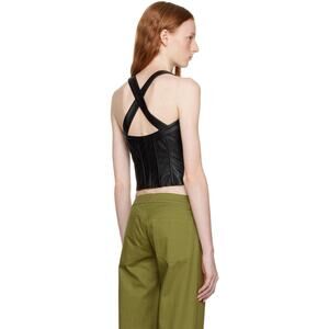 Grained faux-leather corset-style tank top. Boning throughout. · Scoop neck · Silver-tone logo hardware at zip closure · Fixed shoulder straps · Criss-crossing straps at back · Unlined Part of the Miaou x Hannah Jewett collaboration. Supplier color: Black